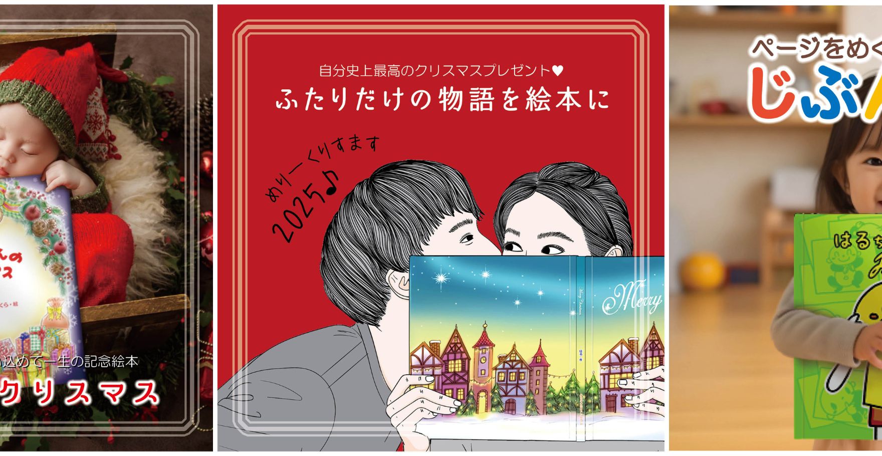 あなたの絵本ドットコムでは、クリスマスプレゼントとして、お子様や恋人へ贈るオリジナル絵本を作成することができます。絵本のタイトルや内容は、お客様のご希望に合わせて自由にカスタマイズすることができます。また、また、お写真ページやフリーページなどオプションメニューも充実し、寄せ書きなどもできて、さらに特別なプレゼントになります。絵本の印刷・製本は、自社で行いますので、1冊からの小ロット制作が可能です。絵本の納品は、お客様のご希望に合わせて承ります。 あなたの絵本ドットコムのオリジナル絵本は、クリスマスプレゼントとして、大切な方へ贈る特別なプレゼントです。名入れやセミオーダー、フルオーダーで、お客様の想いを込めた絵本を作成いたします。 【クリスマスプレゼントとして贈るオリジナル絵本の例】 絵本の主人公をお子様や恋人に置き換えて、クリスマスのストーリーを描く 絵本の最後に、お子様や恋人への愛情込んだメッセージを添える 手軽な名入れから、イラストまで特注のフルオーダーまでラインナップも充実 【あなたの絵本ドットコムの特徴】 絵本のタイトルや内容は、お客様のご希望に合わせて自由にカスタマイズすることができます。 また、お写真ページやフリーページなどオプションメニューも充実し、寄せ書きなどもできて、さらに特別なプレゼントになります。 絵本の印刷・製本は、自社で行いますので、1冊からの小ロット制作が可能です。 絵本の納品は、お客様のご希望に合わせて承ります。 あなたの絵本ドットコムのオリジナル絵本で、クリスマスに大切な方へ愛情を伝えましょう!